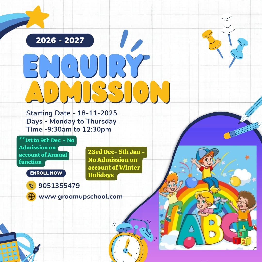 Groom Up was started in 2001 looking at the dire necessity of the area for a kid’s school where learning is fun. The motto of the school is hence character building, overall personality development and not merely making some learning parrots.